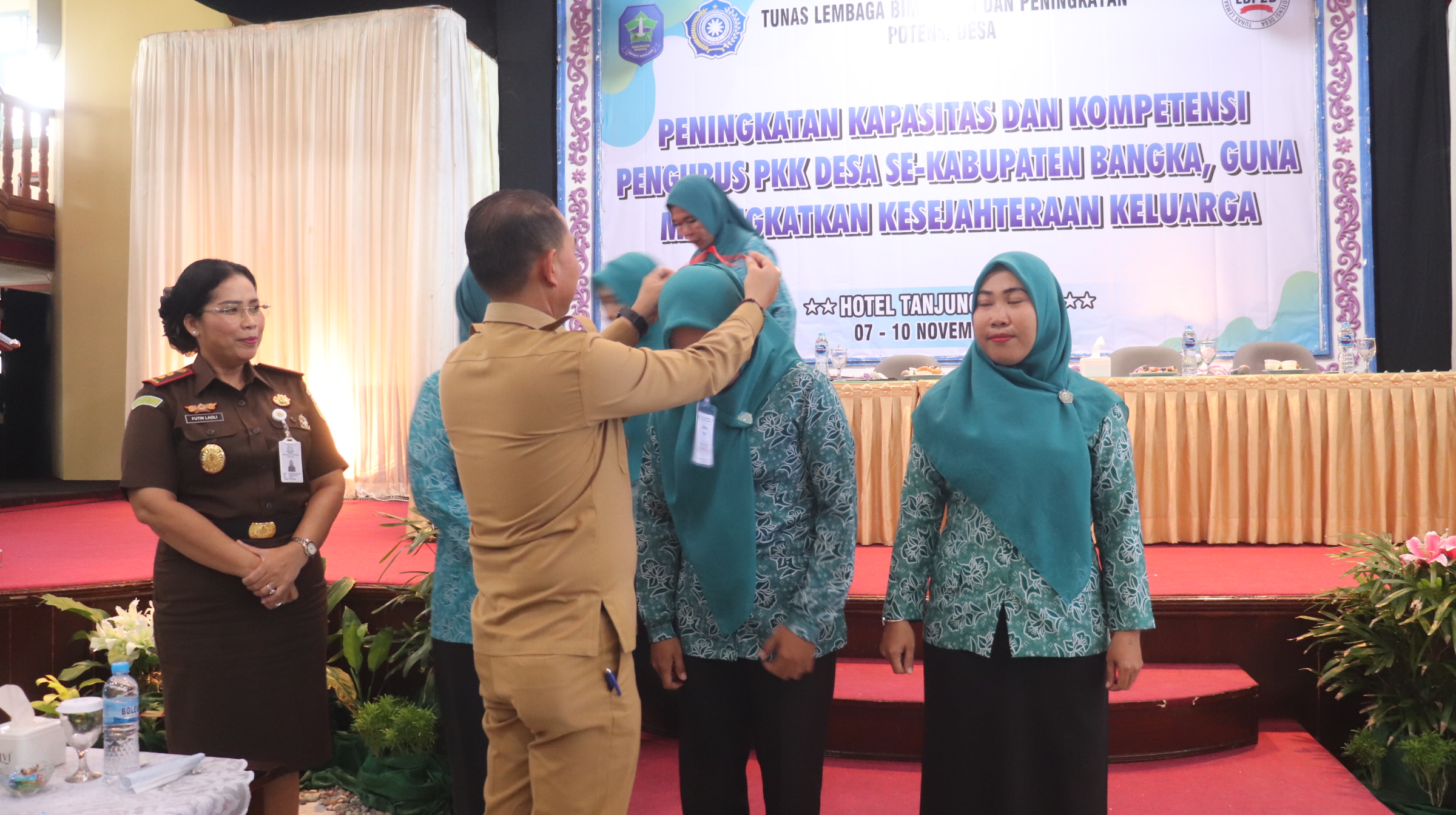 Sungailiat - Pemerintah Kabupaten Bangka Melalui Seketariat Tim Penggerak PKK Kabupaten Bangka menggelar Bimbingan Teknis (BIMTEK) Peningkatan Kapasitas dan Kompetensi Pengurus PKK Desa Se-Kabupaten Bangka, Guna Meningkatkan Kesejahtraan Keluarga. Acara bimtek ini di buka langsung oleh Bupati Bangka Mulkan SH., MH bertempat di Hotel Tanjung Pesona Sungailiat, Senin (07/11/2022). PKK Desa adalah mitra pemerintahan desa perpanjangan dari pemerintah Daerah dan Pemerintah Pusat sebagai ujung tombak pembangunan. Saat sambutan Bupati mengatakan bahwa suami ataupun Pak Kepala Desa harus setia mendampingi terutama ketika ada kegiatan ibu-ibu PKK yang seperti kegiatan bimtek ini. "Jadi para kepala desa harus setia mendampinggi dari pada Tim Penggerak PKK yang ada di desa-desa kita, karena ujung tombal dari pembangunan ataupun pemberdayaan keluarga yang ada di desa adalah Tim Penggerak PKK kita,"imbuhnya Lanjutnya, Bimtek ini bukan hanya untuk Pak Kades dan beserta perangkat desa tetapi ibu-ibu Tim Penggerak PKK juga harus di bekalkan, harus diberi ilmu pengetahuan. Bagaimana strategi ibu-ibu terutama untuk meningkatkan kesejahtaran keluarga yang ada di Desa. "Bahwa 62 Desa sampai hari ini luar biasa, terutama keharmonisan kepala Desa dan perangkat-perangkat Desa dan juga Tim Penggerak PKKnya sampai hari ini berjalan dengan baik,"kata bupati "Bahwa tugas di dalam peningkatan kesejahtraan keluarga itu bukan hanya berfokus kepada bapak-bapak saja tetapi tugas kita bersama tentunya para ibu-ibu Tim Penggerak PKK kita,"pungkasnya Kegiatan ini dilaksanakan selama 4 hari dari tanggal 07 - 10 November 2022, peserta Bimtek ini sebanyak 151 orang terdiri dari ketua dan seketaris PKK Desa se-kabupaten bangka.