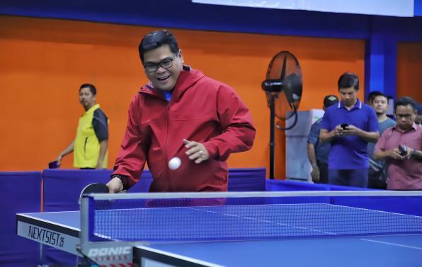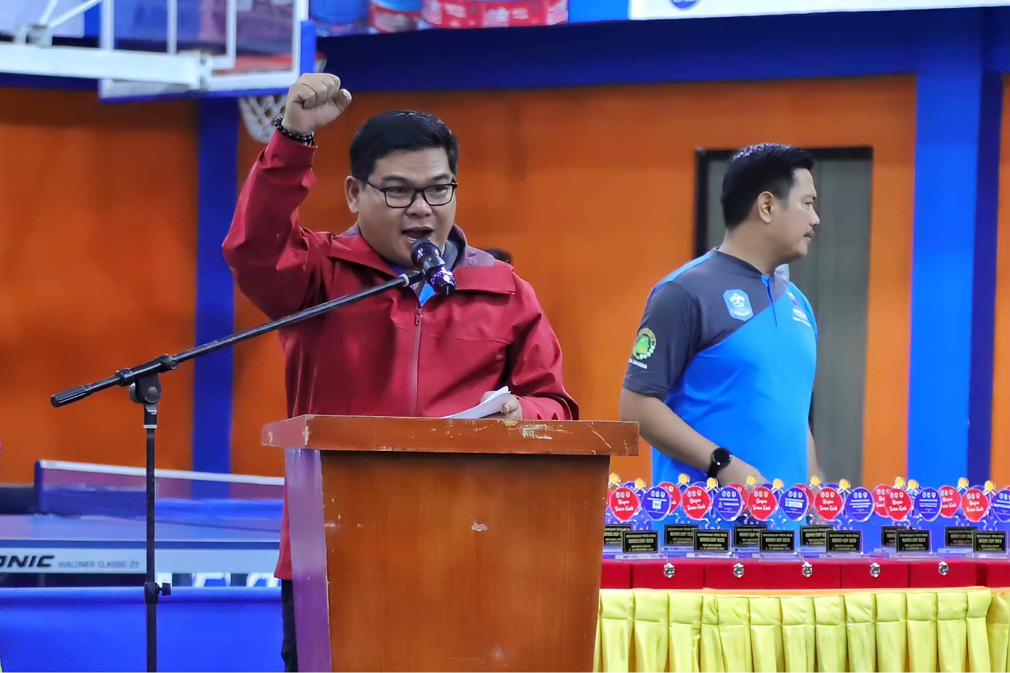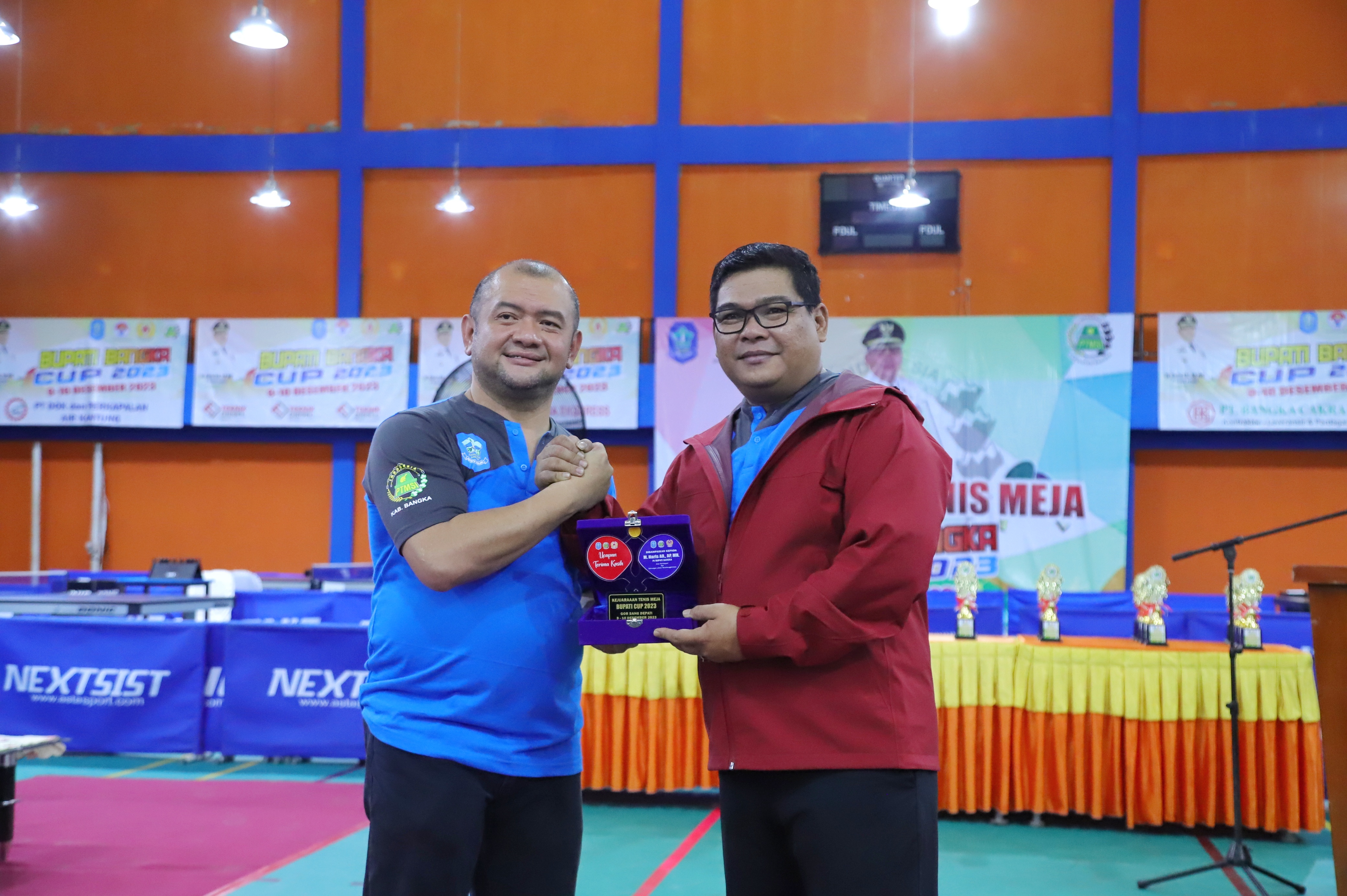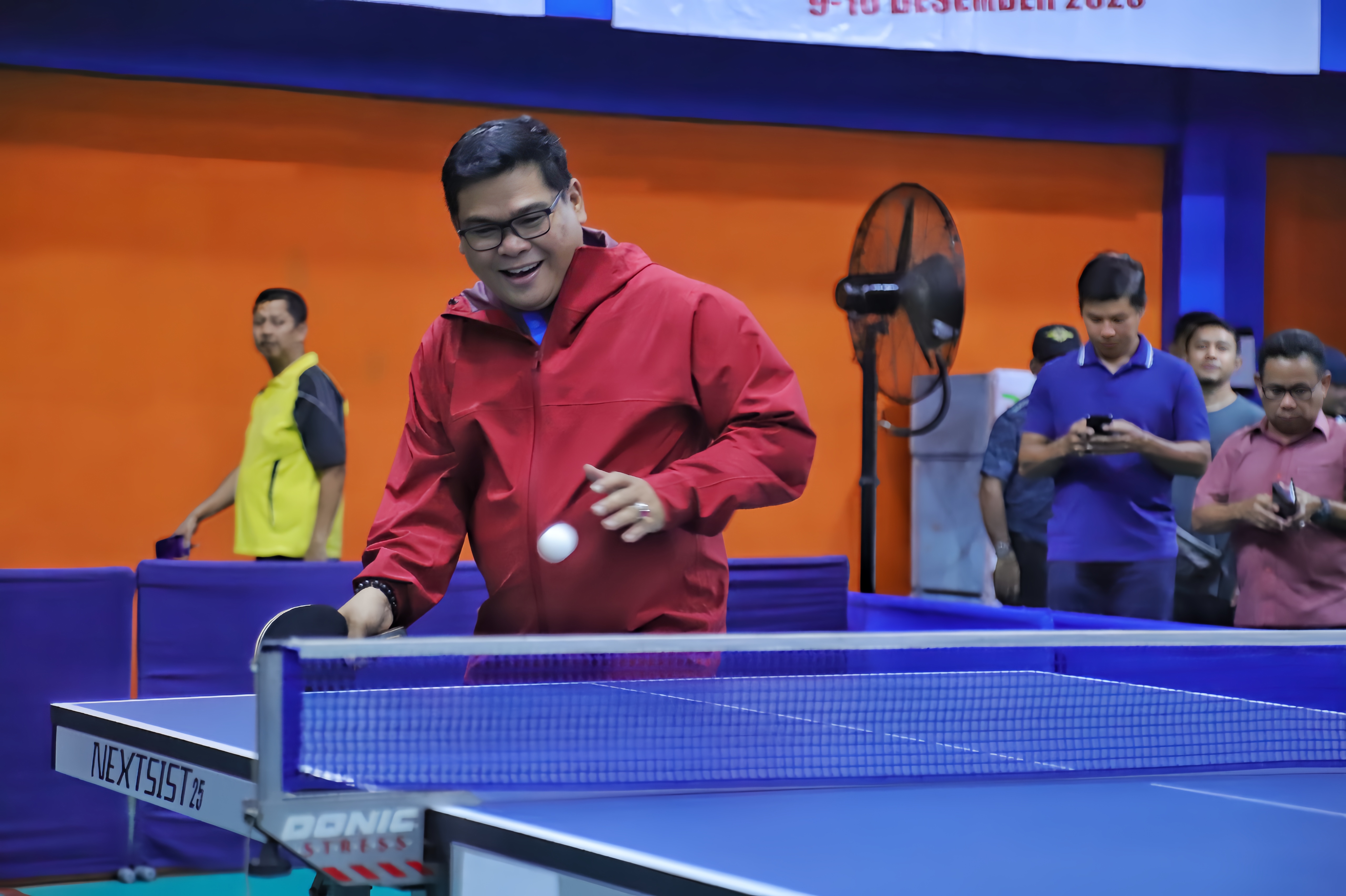 Sungailiat - Pj Bupati Bangka M. Haris AR, AP, M.H secara Resmi Membuka Kejuaraan Tenis Meja Bupati Bangka CUP Tahun 2023, di Gor Sang Depati Sungailiat, Sabtu (09/12/2023).