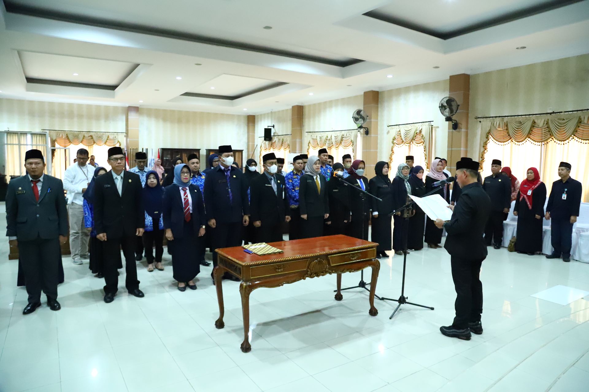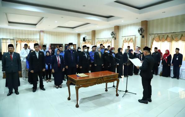 Sungailiat, Bupati Bangka Mulkan melantik pejabat struktural dilingkungan Pemerintah Kabupaten Bangka di gedung OR. Bangka Setara, Jumat (27/01/2023).