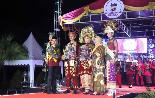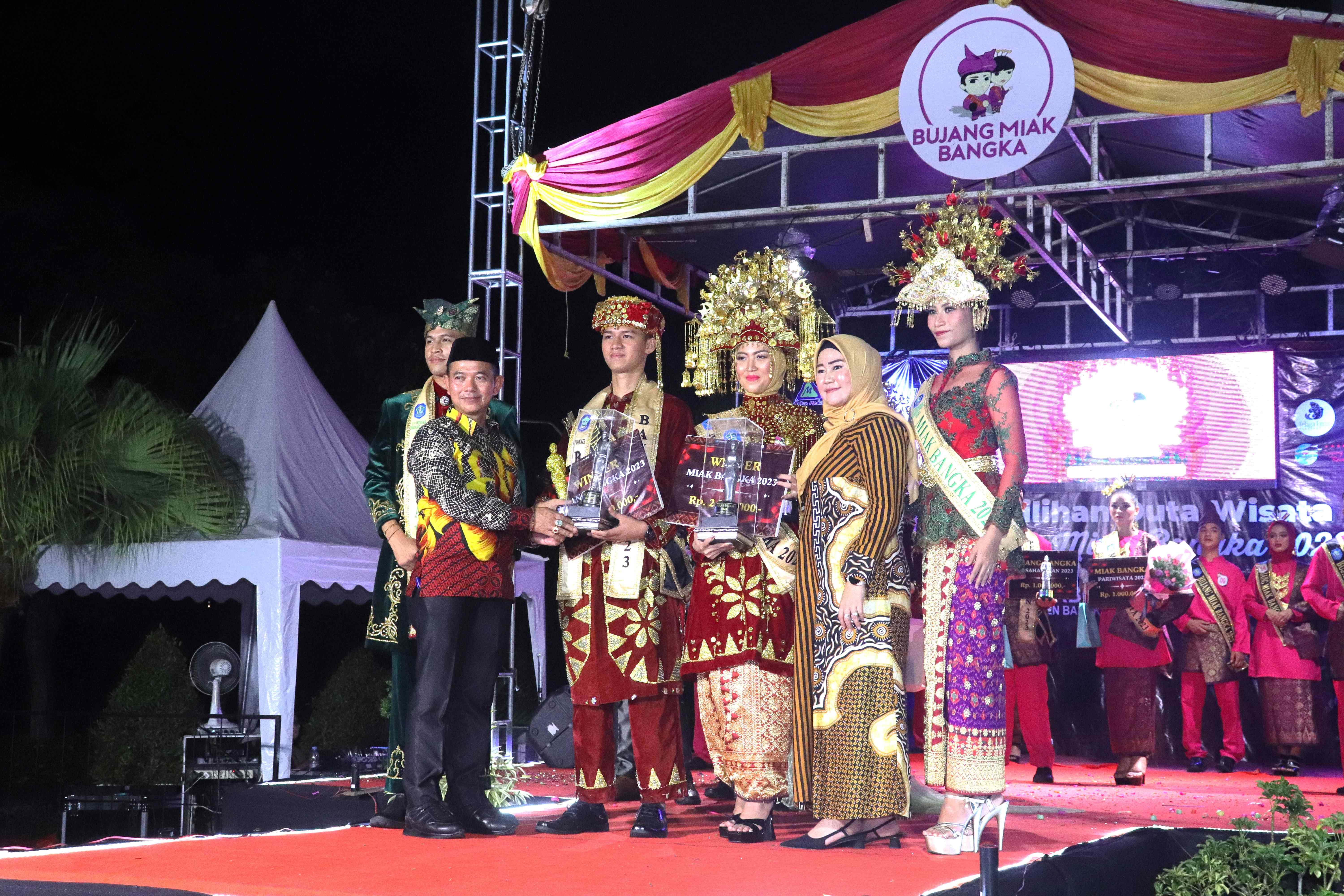 Sungailiat - Deon Agustydya Chandra dan Gusti Viranda Chorena di nobatkan sebagai Bujang Miak Bangka untuk tahun 2023, setelah menyisihkan 10 pasangan lainnya di malam Grand Final Pemilihan Bujang Miak Bangka Tahun 2023 di Hotel Novilla, Sabtu (5/8/2023).