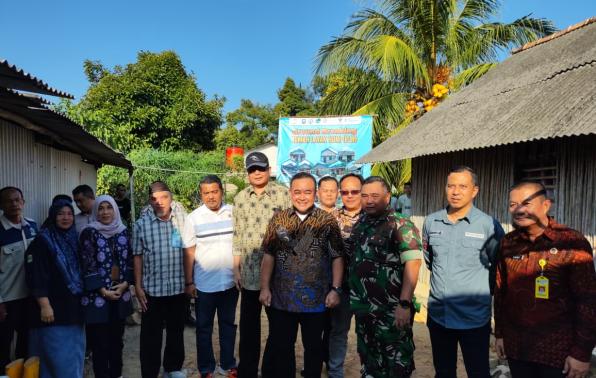 Pemali – Pj. Bupati Bangka Jantani Ali dampingi Dirjen Kawasan Permukiman Ir. Fitrah Nur dalam kegiatan Ground Breaking Peletakan Batu Pertama Pembangunan Rumah Layak Huni (RLH) Bertempat di Desa Penyamun Kecamatan Pemali, Jumat (01/08/2025).