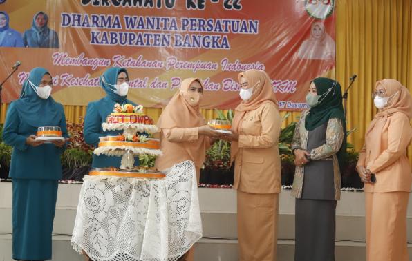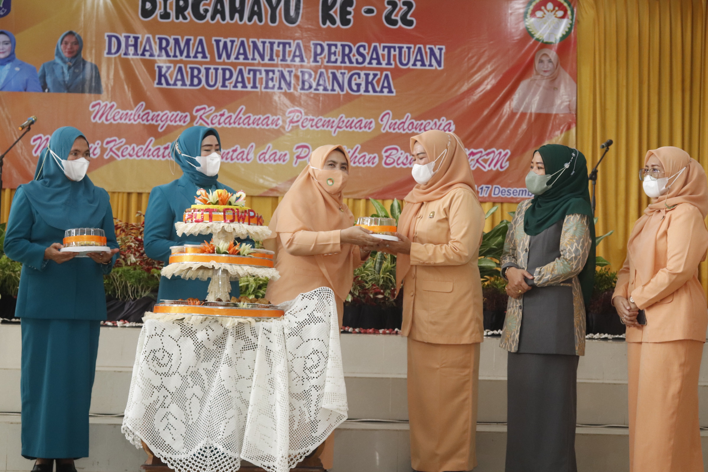 Sungailiat - Peringatan Hari Ulang Tahun Dharma Wanita Persatuan (DWP) ke 22 Tahun Kabupaten Bangka diisi dengan kegiatan bakti sosial. Puncak pelaksanaan juga dilaksanakan di Gedung Sepintu Sedulang Sungailiat dengan sejumlah kemeriahan, Jum'at (17/12/2021).