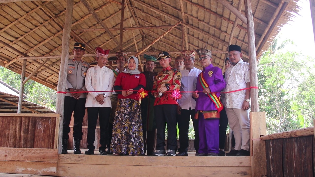 Mendo Barat - Bupati Bangka Mulkan SH MH, meresmikan Balai Adat Laboe Oesang Desa Labuh Air Pandan, Kecamatan Mendo Barat, Kabupaten Bangka, Minggu (7/8/2022).