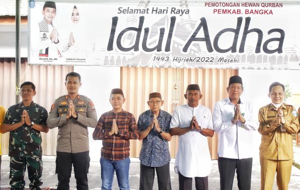 Bupati Bangka juga tak lupa mengucapkan selamat hari raya idul adha 1443 hijriah kepada masyarakat serta berterimakasih kepada para OPD yang telah ikut menyumbang hewan qurban.