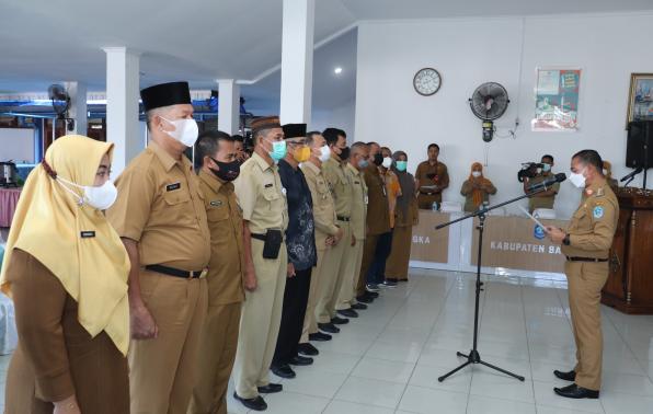 Sungailiat - Bupati Bangka, Mulkan SH MH membentuk dan melantik sejumlah pengurus Komisi Daerah Lanjut Usia (Komda Lansia) di Rumah Dinas Bupati Bangka, Selasa (27/7/2021). Komda tersebut dibentuk guna mengakomodir dan memperhatikan kesejahteraan para lansia.