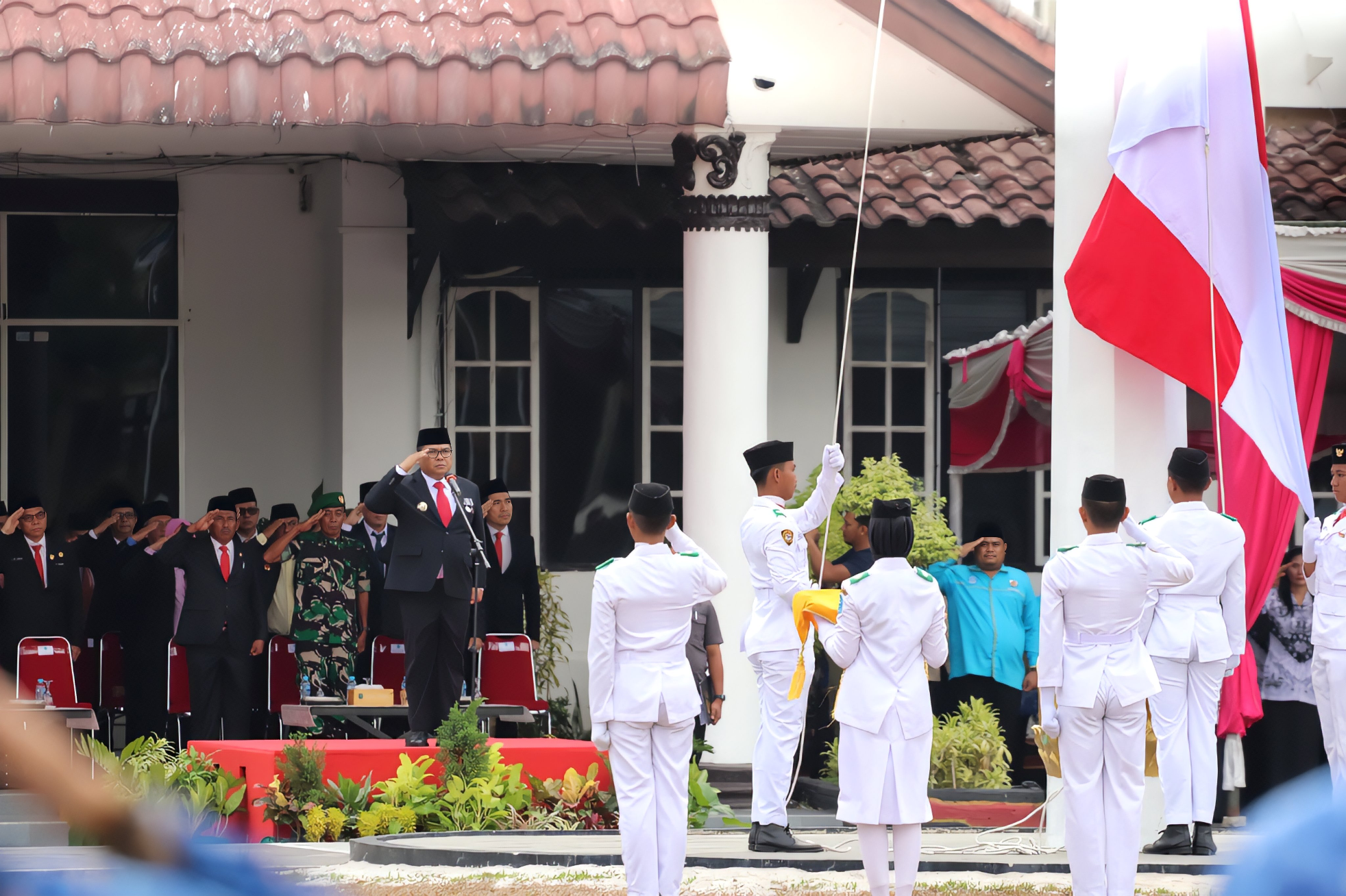 Kegiatan tersebut dihadiri langsung Sekda Bangka Drs. H. Andi Hudirman, Ketua DPRD Bangka Iskandar Sidi serta jajaran Forkopimda Bangka, Para Kepala OPD dilingkungan Pemkab Bangka dan ratusan peserta upacara.