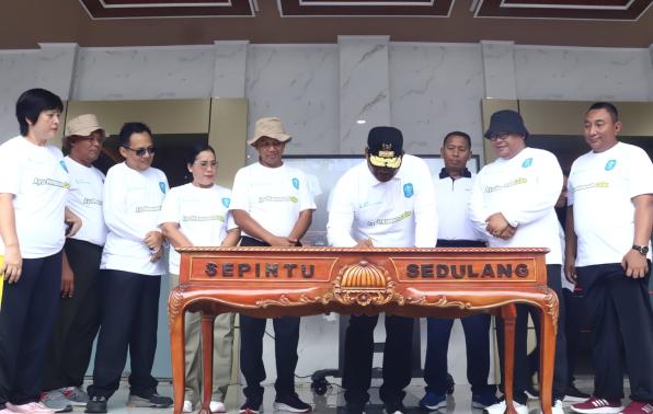 Sungailiat - Penjabat (Pj) Gubernur Bangka Belitung Safrizal ZA didampingi Pj Bupati Bangka M. Haris AR, AP, M.H meresmikan Gedung Pertemuan Graha Maras Pemerintah Kabupaten Bangka, pada Jum'at (02/02/2024) pagi.