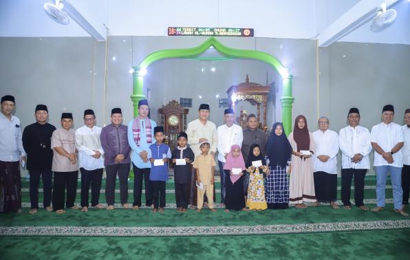 Acara di akhiri dengan pemberian bantuan kepada pihak masjid berupa kipas angin, serta pemberian bantuan kepada beberapa mustahik dan anak yatim piatu yang di berikan langsung oleh Bupati Bangka.